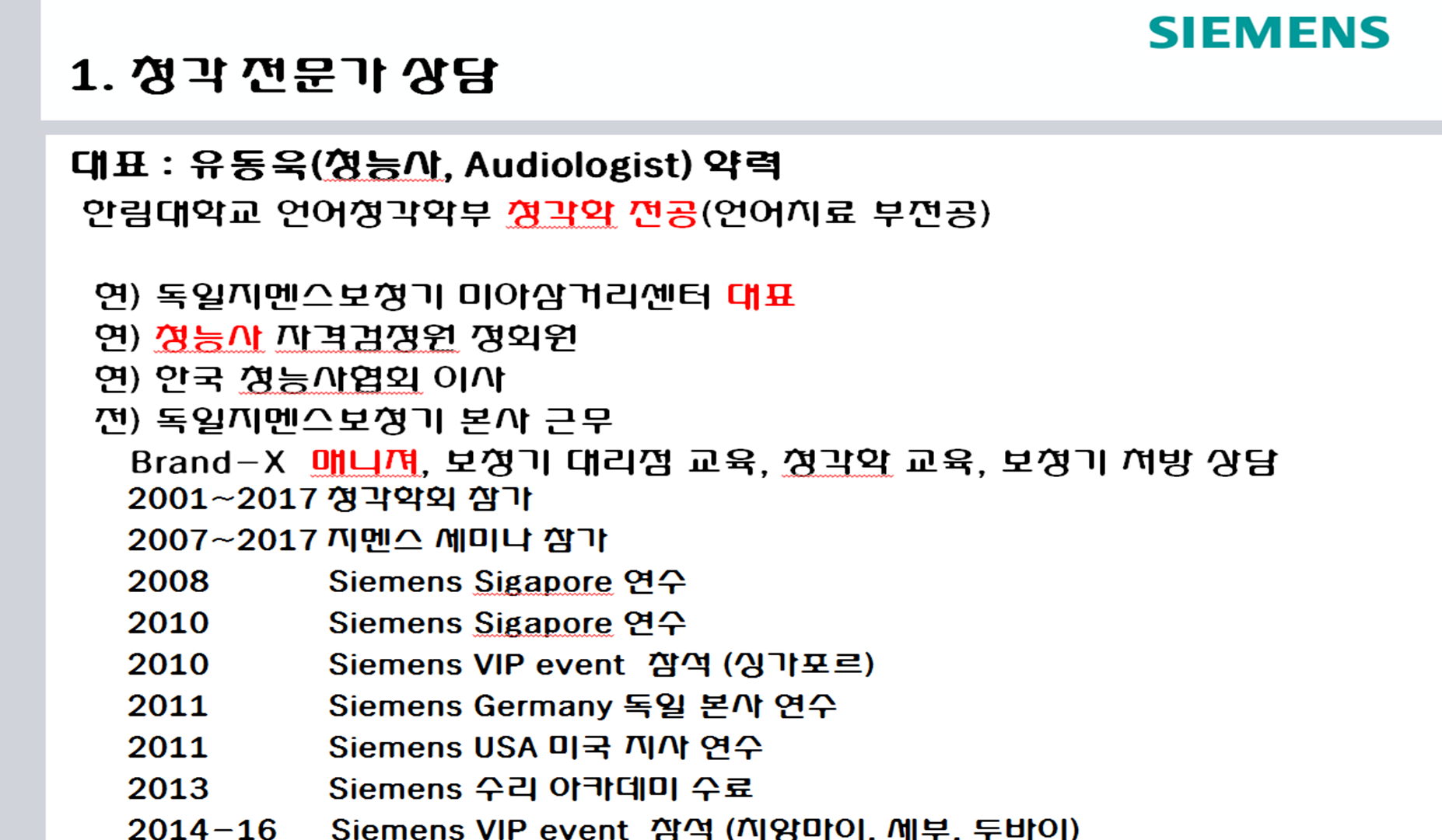 지멘스보청기 본사에서 근무한 경험과청각학 전공한 전문가로서 고객님께 |