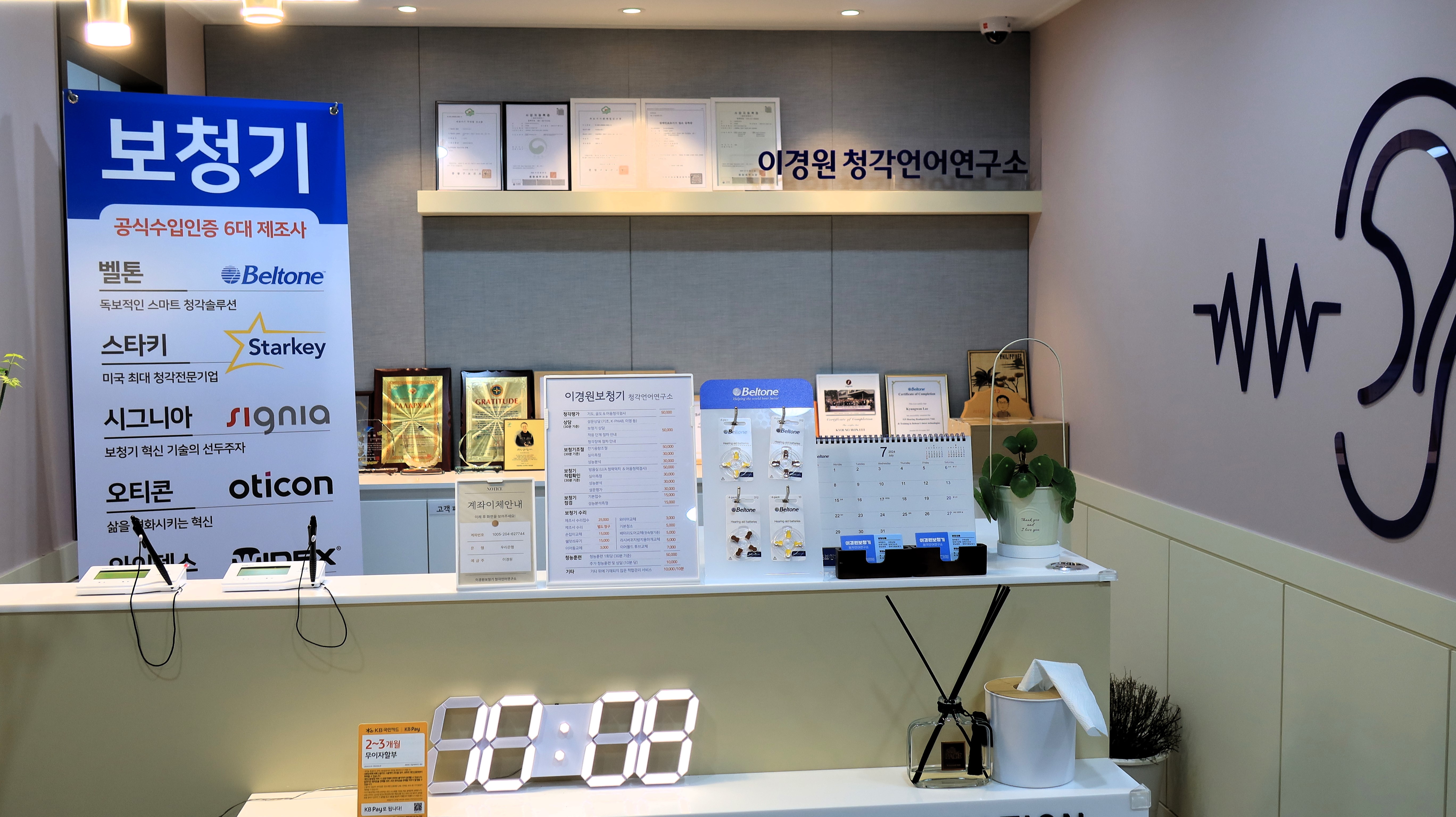 2024년 3월에 설립한 이경원보청기 & 이경원청각언어연구소입니다. 위치는 서울시 중랑구 동일로 865 (묵동) 덕산빌딩 2층으로 대표(전문청능사 이경원)과 청능사 김태윤 실장이 근무하고 있습니다.