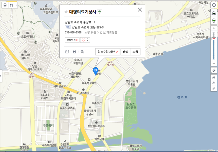 | 주소 | [24853] 강원 속초시 중앙로 11 (교동) 대명의료기 | ||