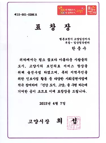 5. 고양시 (시장 최성) 보건의료분야 표창장