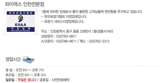 | 상호명 | 와이덱스보청기 인천점 | ||